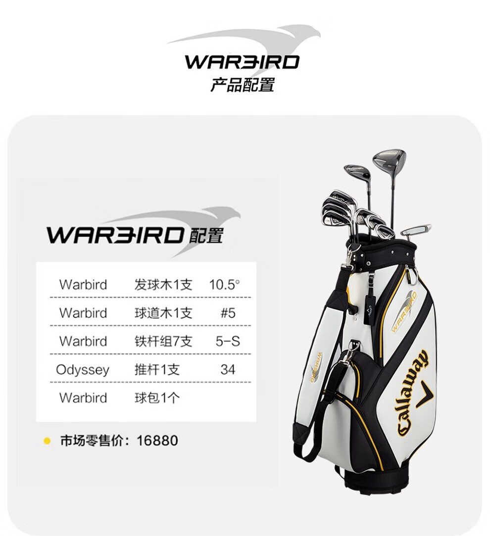 商品名称:Callaway卡拉威高尔夫球杆WARBIRD男士套杆高容错碳素全套球杆初学优选 碳素R全套(2木7铁1推1球包)