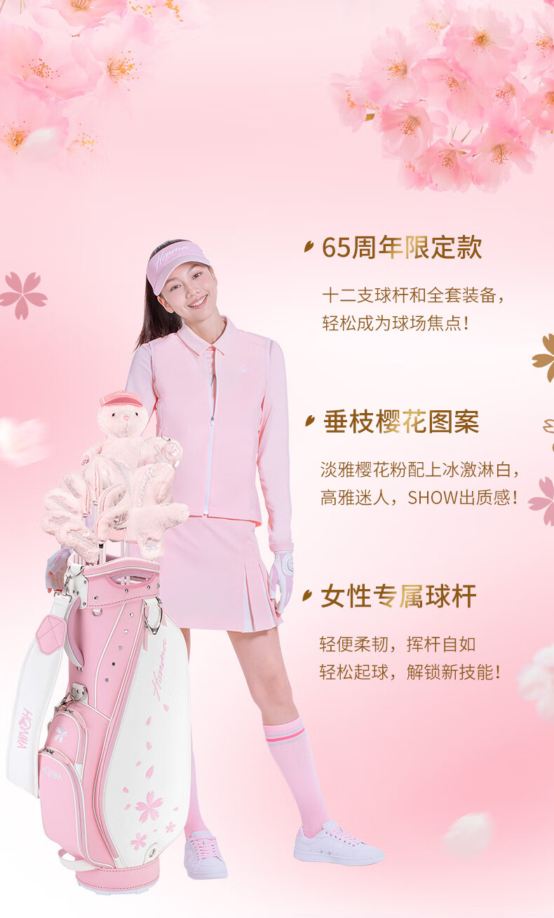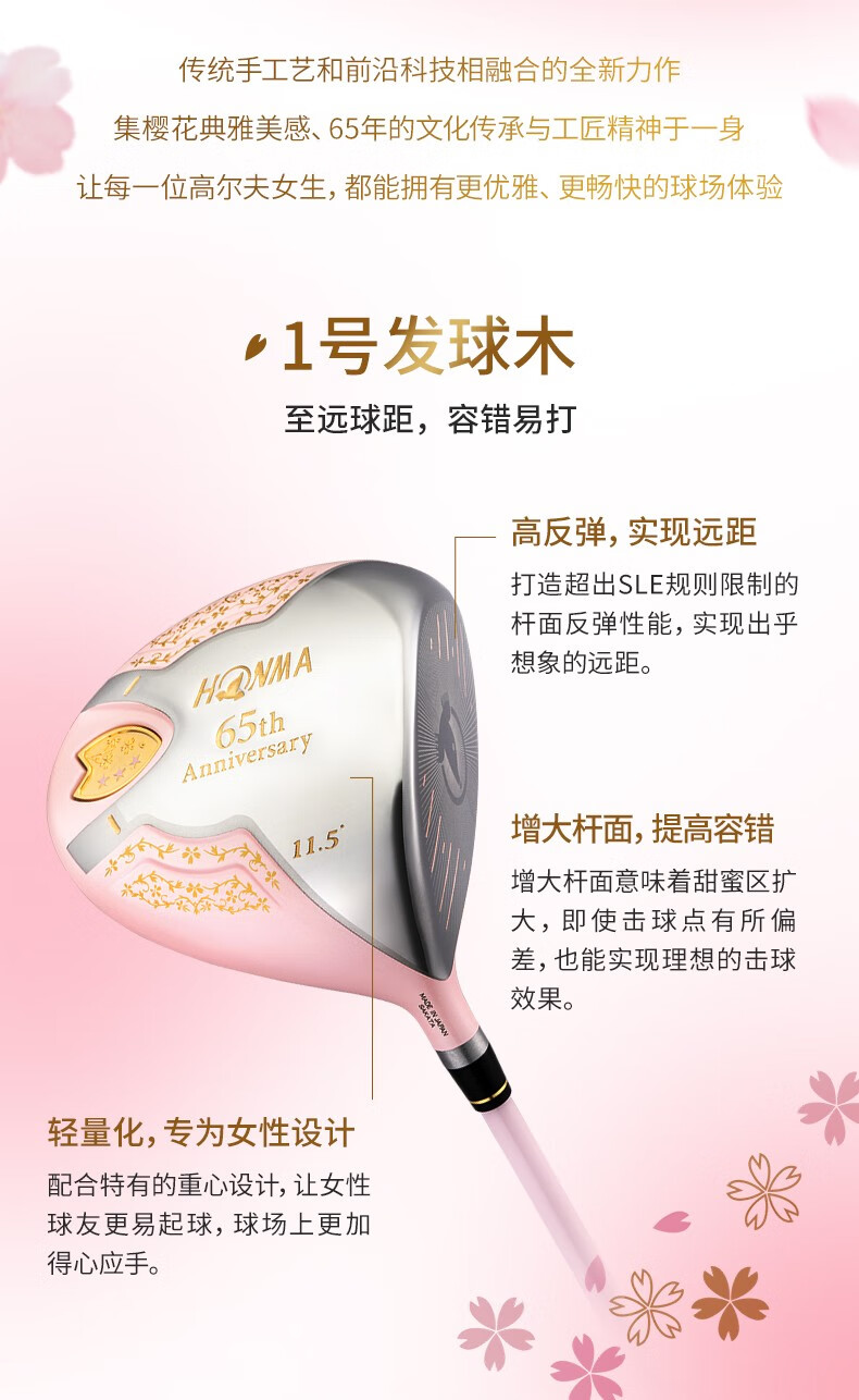 商品名称:HONMA樱之舞三星级女士高尔夫球杆高尔夫套杆65周年限定4木7铁推杆球包 碳素 L 女士 三星级 4木7铁