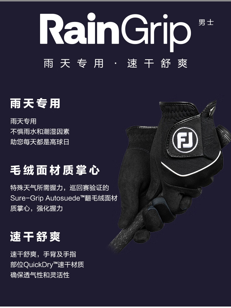 商品名称:FootJoy高尔夫男士手套FJ RainGrip雨天防滑手套高尔夫可水洗单支手套 RainGrip-白/灰(单支左手)左手 23